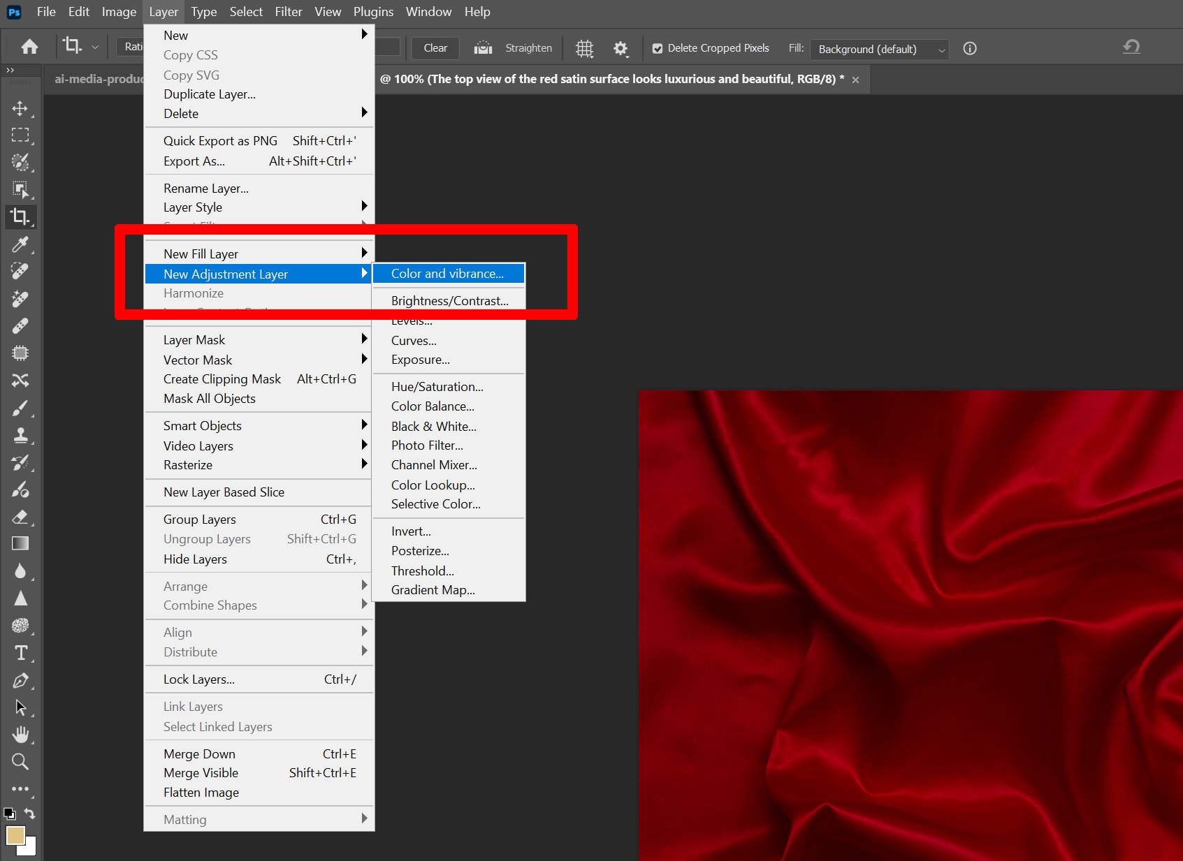 Using Colour And Vibrance Adjustment Layer