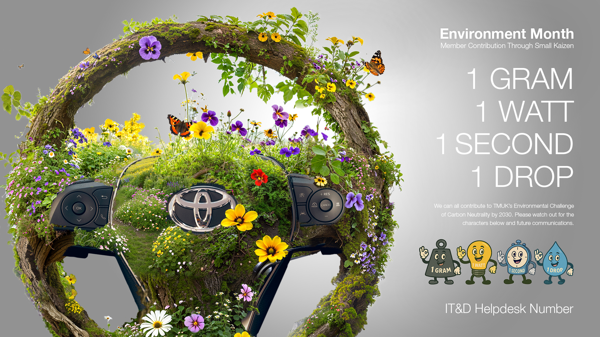 Use the slider on the image above to view the original steering wheel image vs the final design. Below is a looped video of the lock screen generated with Google’s Veo3 AI video platform. See the Environment Month 2024 lock screen.